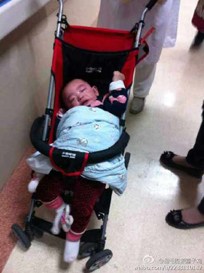 10月15日晚7點(diǎn)30分左右,一名女子將16個(gè)月大的女?huà)脒z棄在上海市第一人民醫(yī)院兒科門診大廳。 新浪微博@翻毛腔額童子雞 圖