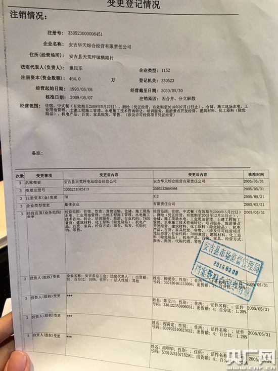 對(duì)此,王安培在接受記者采訪時(shí)稱,自己在2009年退休前,的確是電站工會(huì)主席,但江南天池公司和電站沒有關(guān)系:“我退休之前是電站的工會(huì)主席,09年退休,之前是不能搞三產(chǎn)的,這個(gè)我們是有規(guī)定的。10年推我當(dāng)董事長,變更法人成我的。錢源是我們退休的老同志,大家出點(diǎn)錢,在杭州注冊(cè)了一家錢源公司,拿了一點(diǎn)錢在安吉搞了一個(gè)江南天池度假村,和原來的三產(chǎn)沒有延續(xù)?!?/p>