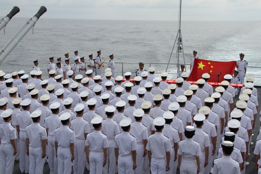 蔚藍(lán)的天空、湛藍(lán)的大海,當(dāng)金色的陽(yáng)光鋪滿艦體,軍樂(lè)隊(duì)奏響雄壯的中華人民共和國(guó)國(guó)歌,在后甲板整齊列隊(duì)的“鄭和”艦官兵代表舉起右手,面向國(guó)旗莊嚴(yán)宣誓,表達(dá)他們對(duì)人民海軍的忠誠(chéng)和熱愛(ài)。