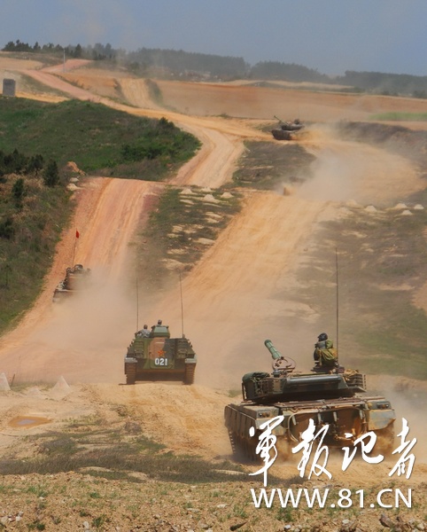 南京軍區(qū)某部把部隊(duì)拉到野外生疏地域展開實(shí)兵檢驗(yàn)性演習(xí),錘煉復(fù)雜電磁環(huán)境下部隊(duì)遠(yuǎn)程機(jī)動(dòng)、指揮控制、偵察預(yù)警和火力打擊能力。圖為4月下旬,該部坦克梯隊(duì)向演習(xí)地域開進(jìn)。(龐祥川)