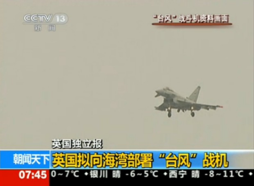報道指出,英國考慮部署戰(zhàn)機的時機是,以色列威脅要對伊朗發(fā)動軍事打擊,中東大部分地區(qū)處于“阿拉伯之春”以及敘沖突余波所帶來的動蕩中。在這一動蕩時期是否向海灣部署戰(zhàn)機,這將由英國首相卡梅倫在同迪拜和阿聯(lián)酋深入交談后做出決定。預(yù)計在不久的將來將宣布相關(guān)決定。