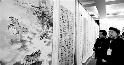 第三屆全國(guó)炎黃書(shū)畫(huà)展在西亞斯學(xué)院開(kāi)幕。記者 張翼飛 圖