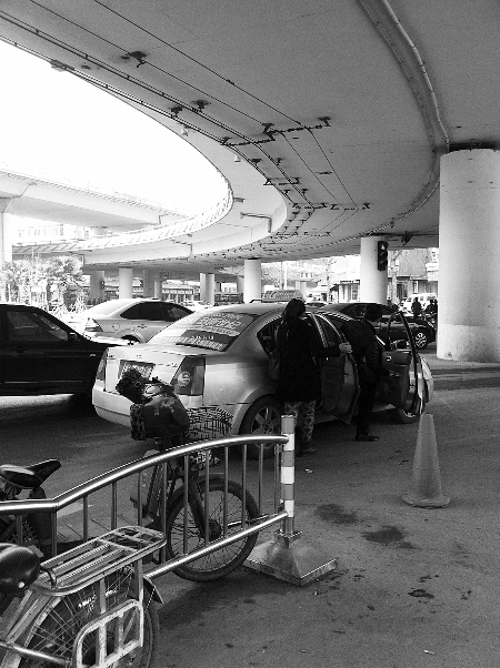 昨天上午10點(diǎn),在鄭州市大學(xué)路和航海路交叉口東北角公交站牌下,記者向4輛已有乘客的出租車招手示意停下,但沒(méi)有一輛停下。