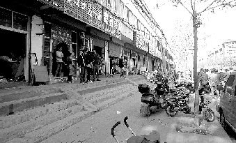 在潁河西路,道路兩側(cè)的機(jī)動(dòng)車(chē)隨意停放,路面污水橫流、垃圾到處都是,路南側(cè)的商戶更是將非機(jī)動(dòng)車(chē)道全部占用。