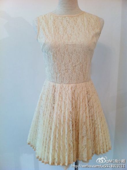 做工超級(jí)精美的蕾絲連衣裙,裙擺也是今年流行的百褶款。亮點(diǎn)是背部,大大的V型露背款啊,一定是身材好的MM才能hold得??!
