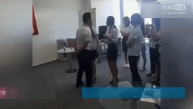 實拍公司團建女員工站一排跟男領(lǐng)導接吻