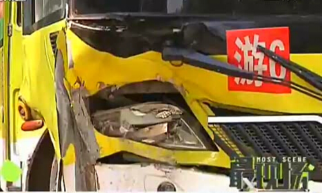 公交車誤撞路墩 十一人受傷