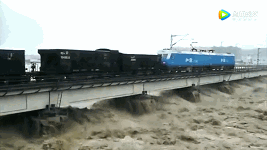 • 洪峰太猛:千噸火車壓橋保安全