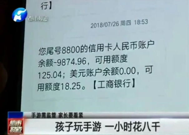 孩子玩手游 一小時花八千