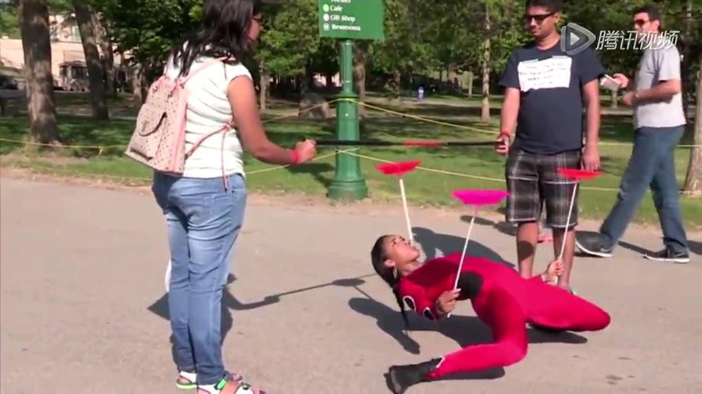 美少女彎腰穿過(guò)啤酒瓶高度欄桿 成功穿行轎車(chē)底部