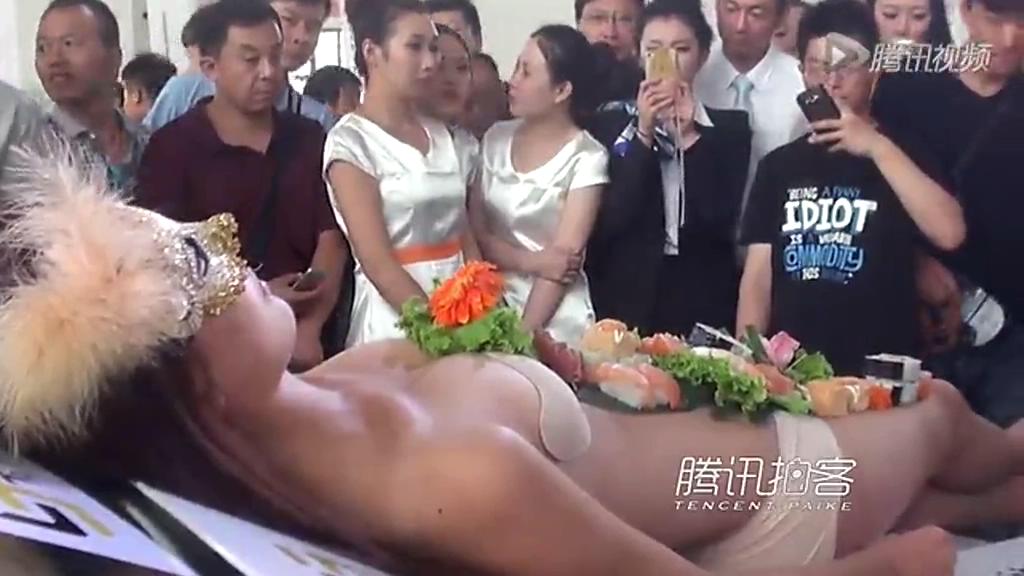 沈陽車展現(xiàn)“女體盛壽司宴”現(xiàn)場(chǎng)試吃