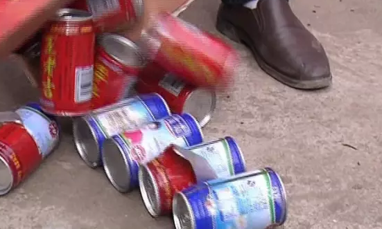 揭開所有罐體上面的塑料層,這下徹底開了眼界,這里面還有杏仁露、核桃露,而且有的還是啤酒罐,罐體可以說是五花八門,這下大伙才明白過來,買到假貨了。無獨有偶,駐馬店確山縣的李大哥也收到了假冒的王老吉。