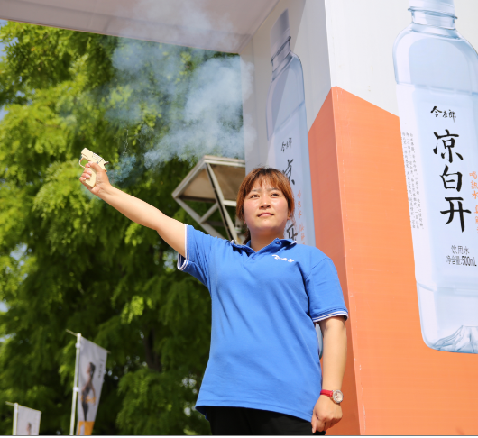 在一番太極戰(zhàn)之后,今麥郎飲品有限公司洛陽(yáng)大區(qū)營(yíng)銷部長(zhǎng)武艷麗帥氣揮槍
