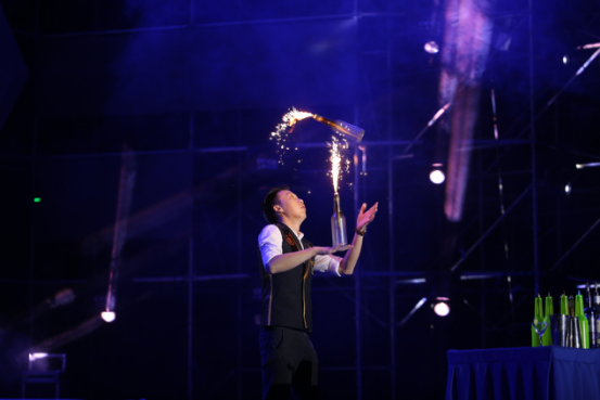 所謂壓軸狂歡,是臺(tái)下觀眾的飽滿熱情—花式調(diào)酒更美味,臺(tái)上臺(tái)下齊歡樂(lè),調(diào)酒師現(xiàn)場(chǎng)表演花式調(diào)酒,臺(tái)下觀眾有眼福更有口福。
