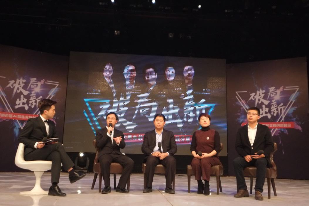最后,美克創(chuàng)客創(chuàng)始人韓可蘇先生、 大山教育集團(tuán)董事長張紅軍先生、現(xiàn)代教育集團(tuán)運(yùn)營總監(jiān)董文靜女士、鄭州星源外國語學(xué)校校辦副主任張高峰先生圍繞著《AI時代民辦教育智能創(chuàng)新實(shí)戰(zhàn)經(jīng)驗(yàn)分享》的話題進(jìn)行了圓桌論壇。四位嘉賓分別從社會熱點(diǎn)到教育理念展開實(shí)戰(zhàn)分享,充分展望未來AI技術(shù)與教育結(jié)合的創(chuàng)新方向。