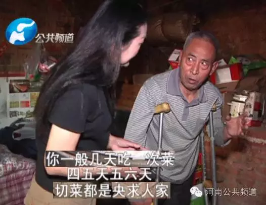 因?yàn)闅埣?,吳傳亭終身未婚,無兒無女的他如今一個(gè)人獨(dú)自生活。為了減少洗刷鍋碗瓢盆的麻煩,吳傳亭每天只能吃一些饅頭和剩菜,偶爾炒一次菜還需要請(qǐng)鄰居幫忙切好。