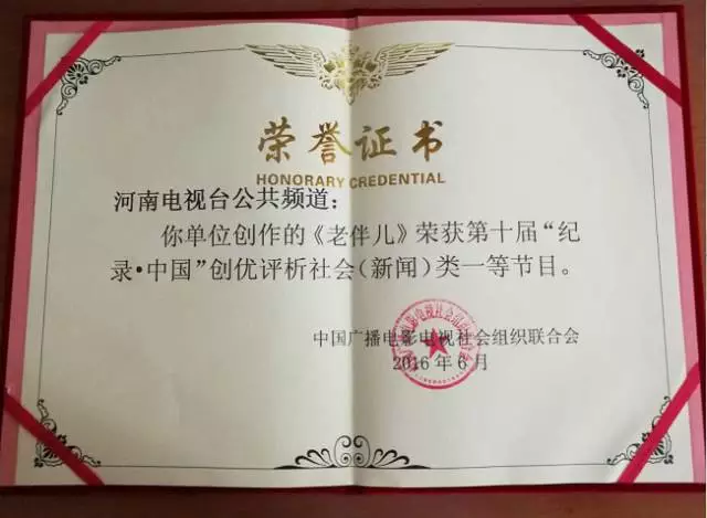 7月6日至9日,第十屆“紀錄·中國”創(chuàng)優(yōu)評析活動在廈門舉行,河南電視臺公共頻道創(chuàng)作的紀錄片《老伴兒》,榮獲社會類一等獎。
