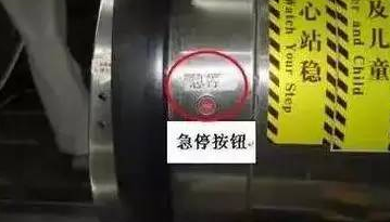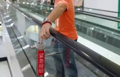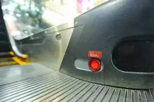 萬一乘坐電梯出事,你必須了解無論上的方向還是下的方向,手扶電梯的一側(cè)下方都有一個(gè)紅色的緊急停止按鈕。