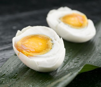 取花椒、桂皮、茴香、生姜、精鹽,用等量水煮沸20分鐘,倒入一瓷壇內,將洗凈的鴨蛋泡入,封嚴壇口,40天后即可煮食。這種鴨蛋香味濃郁,微咸可口。