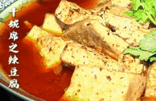 加入切好的老豆腐塊開始燉,湯滾開時放入鹽調味,在跳動的小火上面煨90分鐘后,香辣軟筋的豫西辣豆腐就出鍋了。