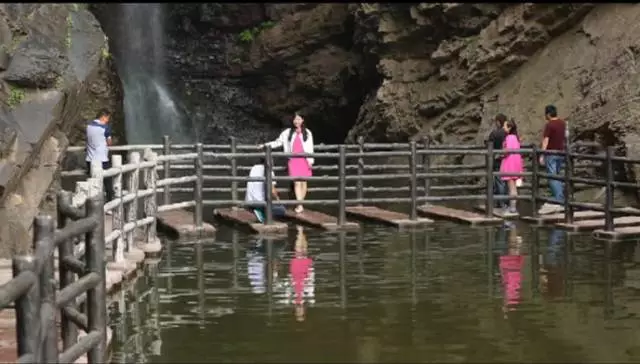 瀑布高達(dá)100余米,從井口水簾洞落下,形成了自然奇觀,漫步在棧道之上,便有穿云破霧之感。在這里,遠(yuǎn)望可領(lǐng)略高山整體氣勢(shì)之壯美,近觀可品察,山石樹(shù)木形色質(zhì)紋之奇秀。