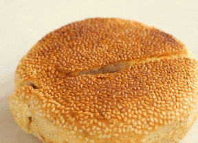 登封本地人最愛(ài)的就是焦蓋燒餅,正宗的焦蓋燒餅表面撒滿芝麻,外面焦黃酥脆內(nèi)層松軟,一半死面一半發(fā)面和成面團(tuán)下成劑子,蘸上油鹽五香粉等調(diào)料后包制成餅,壓制成型后再經(jīng)過(guò)刷水蘸芝麻,餅的雛形就呈現(xiàn)出來(lái)了。