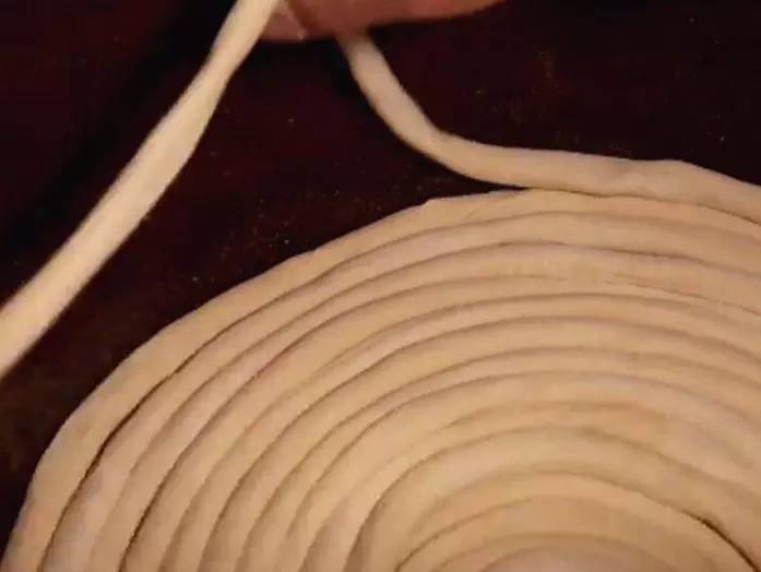 粗粗的面條用手搓勻后粘上玉米面,經(jīng)過兩次盤條變的更細也更筋道。緊貼盆壁將面條下入盆中,還要經(jīng)過8個小時的醒制。