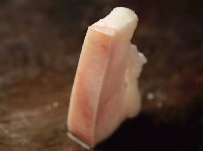 與常見的肥肉不同,黑豬肉肉質(zhì)十分緊實(shí),隨手切下來一塊放在桌子上就能直立起來不會(huì)塌架的。肉皮十分緊致,用手怎么捏都不會(huì)變形。