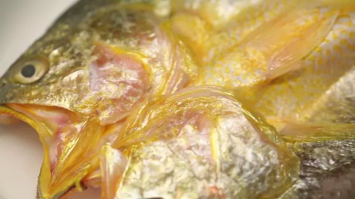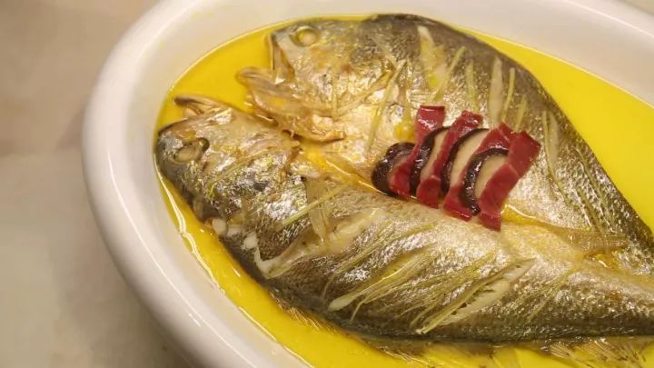 大黃魚,每年農(nóng)歷八九月份最為肥美,它體內(nèi)有一種天然黃色色素,遇到陽光中的紫外線就會分解,所以只有在夜里捕撈才會呈現(xiàn)金黃的色澤。這種魚據(jù)說個頭越大肉質(zhì)越好,而能被用來做菜的大黃魚,一般重量都在1斤8兩以上。
