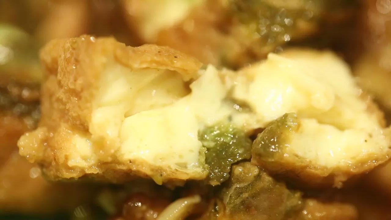 主廚研發(fā)的新式廣東菜——萬怡黑豆腐,乍一看很像豆腐泡,咬開卻是嫩滑的像布丁一樣的雞蛋豆腐。制作時還特意加入了海苔,也增添了幾分鮮香。肉末和高湯燒成醬汁裹在黑豆腐上,再配上入口即化的雞蛋豆腐,今天的晚飯穩(wěn)了!