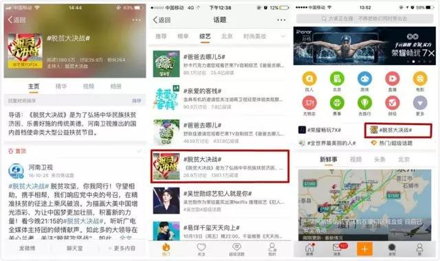 節(jié)目播出至今,“脫貧大決戰(zhàn)”早已在網(wǎng)絡(luò)社交平臺(tái)上引起了網(wǎng)友熱議。人民網(wǎng)、光明網(wǎng)、央視網(wǎng)、中國(guó)網(wǎng)、環(huán)球網(wǎng)、騰訊、新浪、網(wǎng)易、今日頭條、百度等數(shù)百家媒體進(jìn)行轉(zhuǎn)載,新浪微博、微信公眾號(hào)等大量自媒體號(hào)廣泛傳播。統(tǒng)計(jì)顯示,截至11月30日,《脫貧大決戰(zhàn)》在新浪微博話題綜合榜上排名第七,全國(guó)綜藝榜排名第二,新浪微博閱讀量達(dá)到了7990萬。