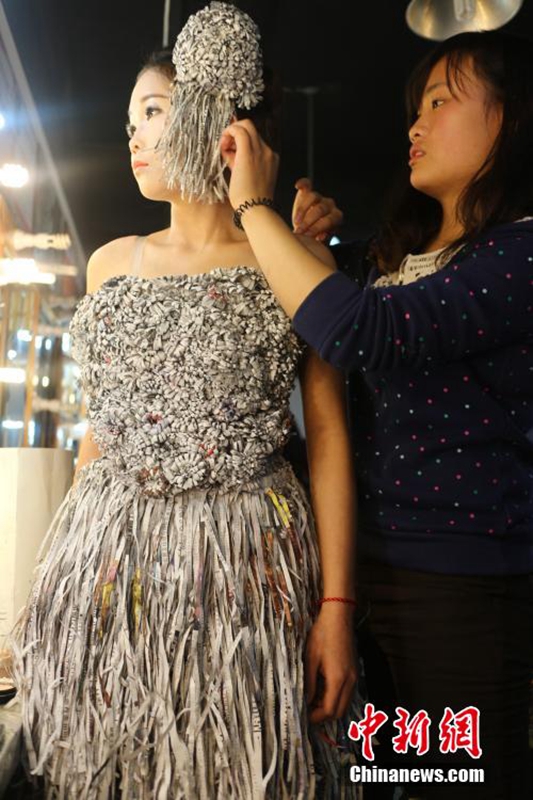 創(chuàng)意又環(huán)保 成都大學(xué)生用廢紙做婚紗