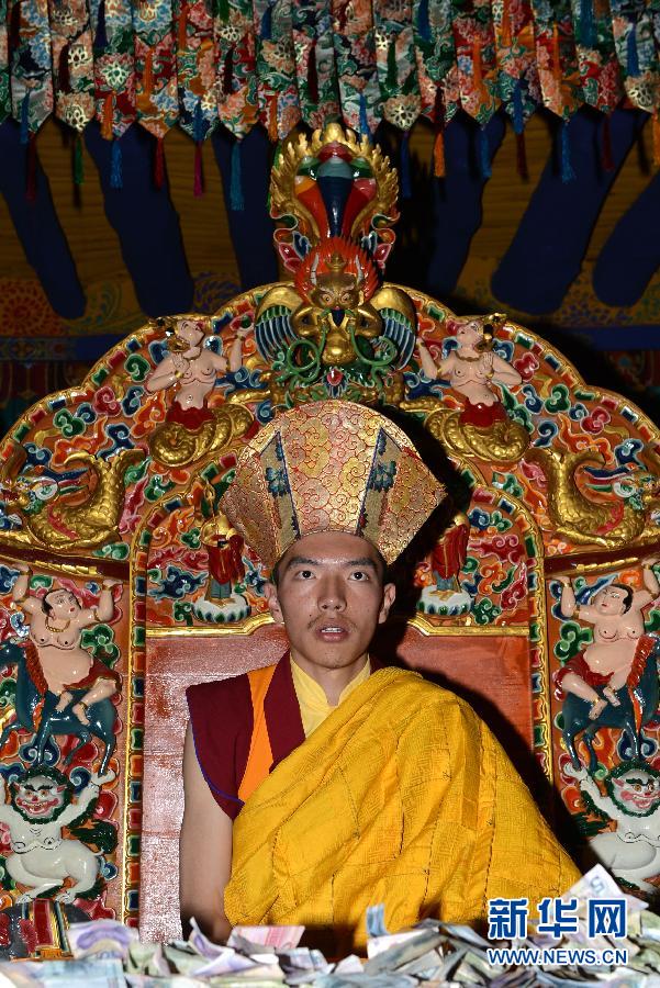 夏仲活佛1997年6月28日生于西藏那曲地區(qū)嘉黎縣阿扎鄉(xiāng),俗名索朗頓珠,2001年被認(rèn)定為第二十二世夏仲活佛的轉(zhuǎn)世靈童。夏仲活佛說(shuō),佛教就是佛陀對(duì)一切有情眾生至善圓滿(mǎn)的一種教育。因此,他在心里放著一個(gè)愿望,希望自己一心一意傳授佛法,讓所有人都能領(lǐng)悟其中的精髓。新華社記者 覺(jué)果攝