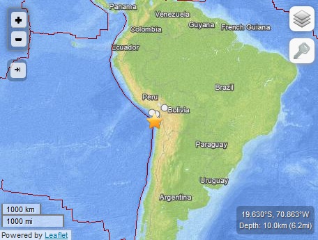 智利西北部海域發(fā)生8.0級地震 發(fā)布海嘯預警