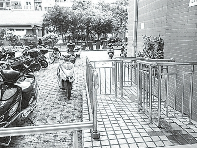 物業(yè)公司在電梯內(nèi)安裝了一個(gè)座椅,防止電動(dòng)車上樓。