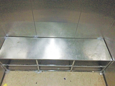 昨天,記者來(lái)到李先生所在小區(qū)52號(hào)樓,該樓一共3部電梯,其中一部顯示正在維修,而另一部電梯內(nèi),緊挨梯廂里側(cè),焊接了一個(gè)寬約30厘米的座椅。第三部?jī)?nèi)尚未安裝座椅。