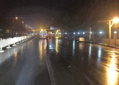 灑掃庭除迎嘉賓,今日凌晨,灑水車仍在街頭灑水。